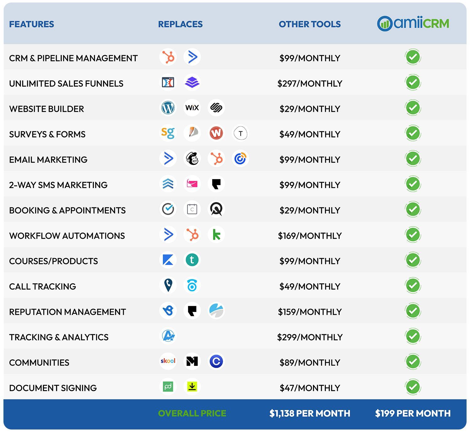 OamiiCRM is included with active Oamii Marketing digital marketing packages. If you are not a digital marketing client with Oamii Marketing, we charge a $199 monthly licensing fee.